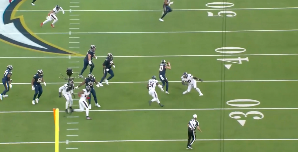 But, after Odafe Oweh sacked C.J. Stroud on a 3rd-and- 9 play, which should have forced a Houston punt and given Los Angeles a chance at a potential game-winning drive with just over two minutes remaining, a flag was thrown on cornerback Tarheeb Still for illegal contact with Texans receiver Xavier Hutchinson downfield, beyond the five-yard limit.